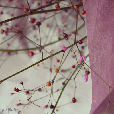 Blumen :) Und ich liebe es neues zu entdecken! Gestern haben die Flowergirls Inga und Elodie bei Facebook bekannt gegeben, dass sich nächste Woche alles um Rosen dreht, also hab ich nach der Arbeit einen Abstecher zum weltschönsten Blumenladen gemacht... hab auch echt tolle Rosen gefunden, die zeig ich euch am Dienstag ;) Und während ich wartete, dass sie mir eingepackt wurden, fiel mein Blick auf ganz unscheinbare Zweige mit kleinen kugeligen Knospen, die vor mir auf der Theke lagen... ich fragte die Besitzerin und die erklärte mir, dass sie die grad erst im garten geschnitten hätte, sie würden erst abends ihre winzigen pinken Blüten öffnen. Leider hab ich den Namen schon wieder vergessen... naja jedenfalls hat sie mir ein paar Zweige geschenkt!